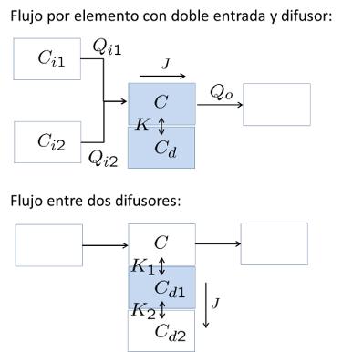 Flujo de f rmaco por elemento con dos difusores