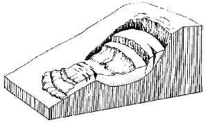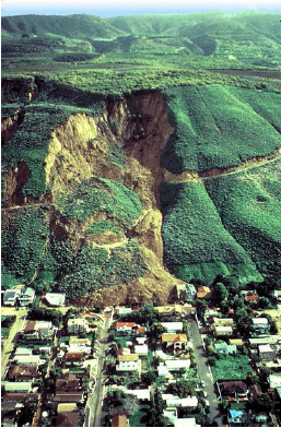 Cuando el terreno cede crea un rea en que el material sede y fluye fuera de su zona original mientras la parte superior se hunde: