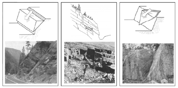 Existen distintos mecanismos de desplazamiento dependiendo de la geometría y tipo de suelo/roca. En general ocurre en alguna parte un corte y el desprendimiento de la masa debajo de este: