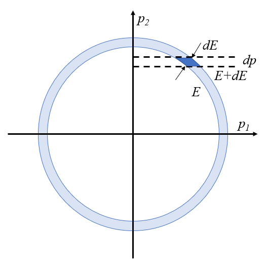 | $ E = \displaystyle\frac{ p_1 ^2}{2 m }+ \displaystyle\frac{ p_2 ^2}{2 m }+ \displaystyle\frac{ p_3 ^2}{2 m }$ |