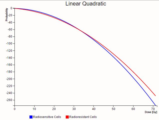 Sin embargo, como en el caso de dosis nula la tasa de sobre-vivencia debe ser igual a 1.0, se tiene para dosis nula el polinomio debe ser nulo. Por ello el polinomio no tiene un factor constante, solo un factor lineal y otro cuadrático en la dosis. Por ello el modelo que se emplea se denomina el modelo lineal cuadrático o por sus ciclas en ingles, el modelo LQ (linear-quadratic).