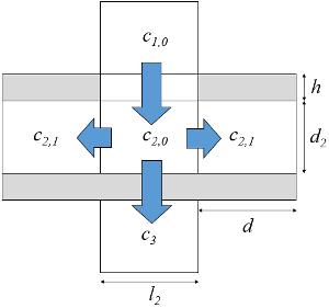 | $\displaystyle\frac{\partial c_{2,0}}{\partial t}=\displaystyle\frac{D}{hd_2}(c_{1,0}-c_{2,0})+\displaystyle\frac{2D}{l_2}\displaystyle\frac{\partial c_{2,s}}{\partial s}-\displaystyle\frac{D_{s2}}{2\pi Rd_2}(c_{2,0}-c_3)$ |