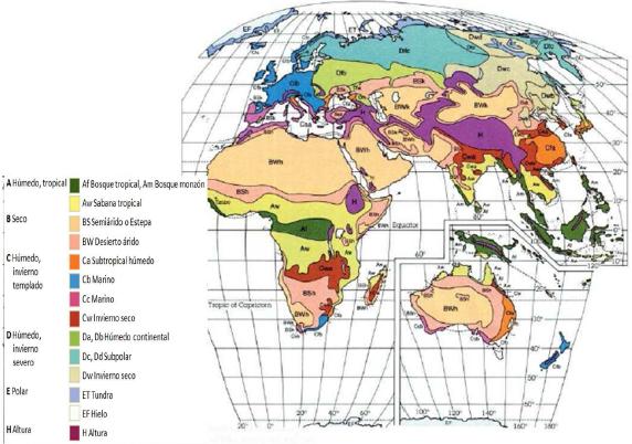 En el caso de África no existe la separación este oeste generado por la cordillera en el caso de Sudamérica. Por ello se presentan las típicas zonas de climas de los bordes oeste y este de los continentes cubriendo gran parte del ancho del continente.