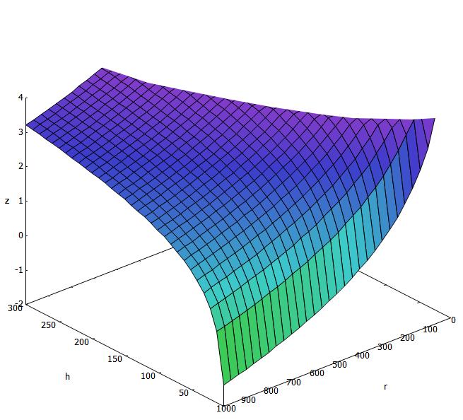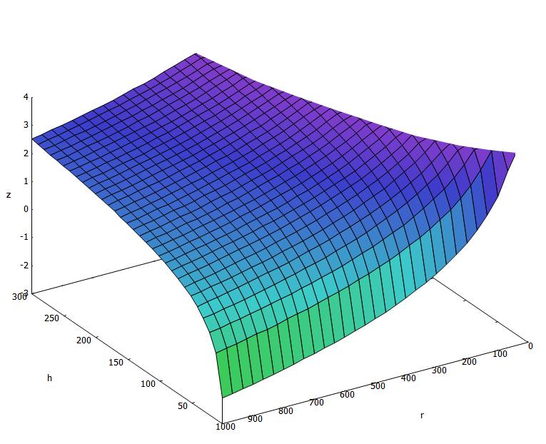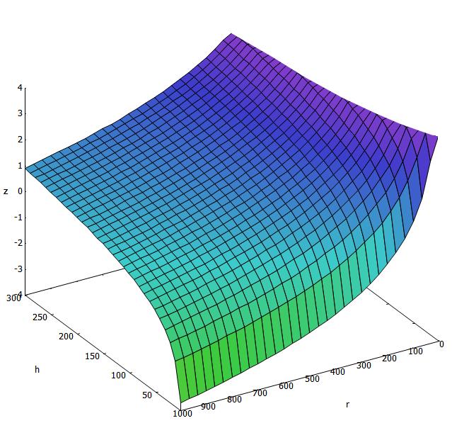 > $d\propto\displaystyle\frac{Vh}{r^2}$