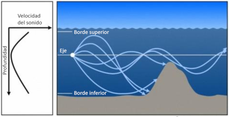 Existe una amortiguaci n del sonido en agua de mar por efecto de interacci n de mol culas con los iones de hidr xido (OH-) o con mol culas de agua. Esto se denomina procesos de relajaci n y ocurren en el agua de mar principalmente con: