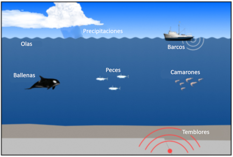 In den Ozeanen gibt es verschiedene Schallquellen. Unter ihnen sind