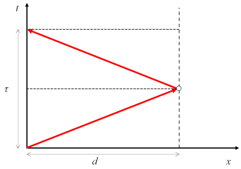 $\Delta\tau = \tau + \displaystyle\frac{ d_2 }{ c } - \displaystyle\frac{ d_1 }{ c }$