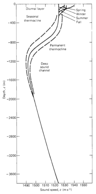 En 1977, Clay et Medwin ont d velopp un mod le pour estimer la vitesse du son en fonction de la temp rature, de la salinit et de la pression.