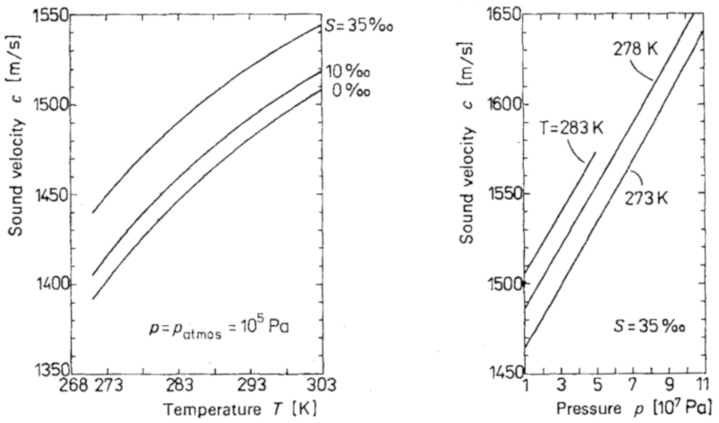 La vitesse du son dans la mer dépend de la pression, de la température et de la salinité.