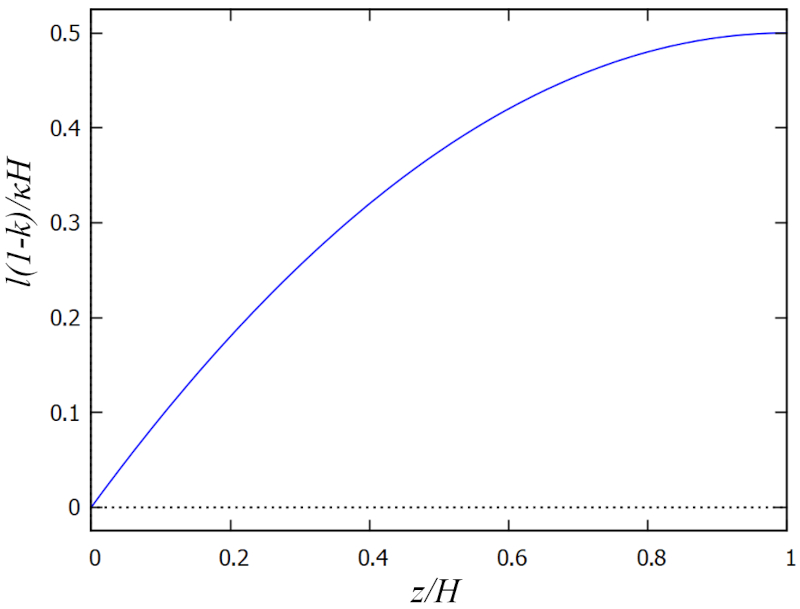 $l \propto \displaystyle\frac{\kappa H}{1-k}$