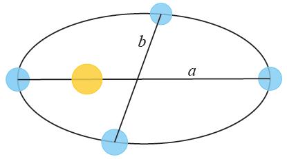 In this case, $a$ represents the major axis, $b$ the minor axis, and $T$ the period of the orbit.