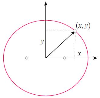 The position of the Earth is described in terms of the coordinates $(x, y)$, with the center of the ellipse taken as the origin: