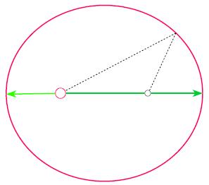 An ellipse can be drawn by fixing a string to two points (the foci) and extending the string to its maximum length, then drawing points around both foci with a pencil: