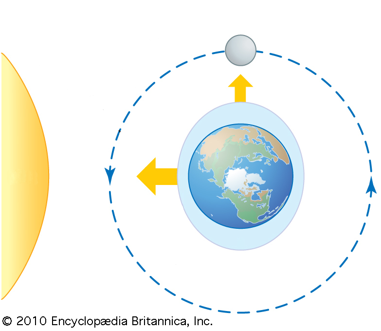 When the sun and the moon align, the tides combine, creating a higher tide. This occurs every time there is a full moon (moon in opposition to the sun) or a new moon (moon aligned with the sun).