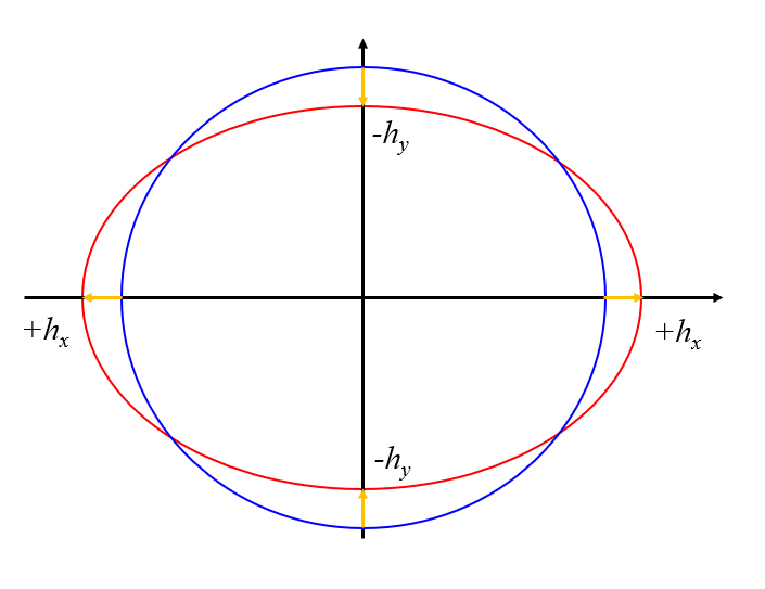 | $h_x = \displaystyle\frac{2 G M }{ g }\displaystyle\frac{ R ^2}{ d ^3}\cos\theta $ |