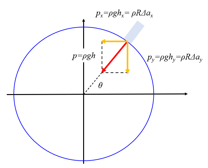 $p_y=\rho g h_y=\rho\Delta a_{cy} R$
