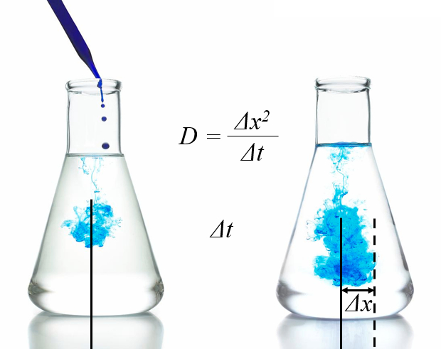 Diffusion corresponds to the random motion of molecules gradually spreading out in space. The multiple collisions frequently cause them to change their travel direction, leading to a slow expansion. To describe this movement, statistical concepts are employed, such as describing the region where the majority of particles are located using the root-mean-square deviation. In fact, this root-mean-square deviation increases linearly over time: