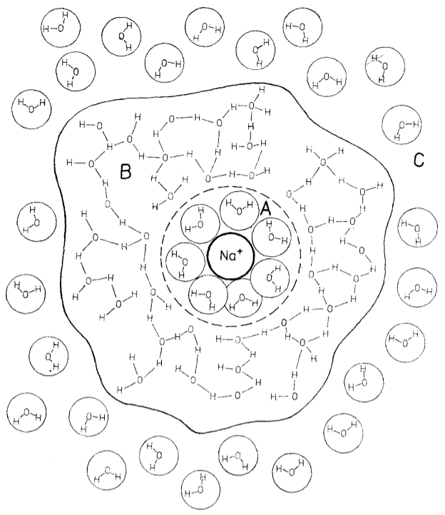 Die Ionen im Salz dissoziieren und sind von Wassermolek len umgeben, die Cluster bilden, die gr er sind als das urspr ngliche Ion: