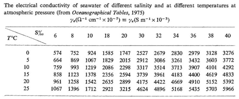 Die folgende Tabelle zeigt die elektrische Leitfähigkeit als Funktion des Salzgehalts: