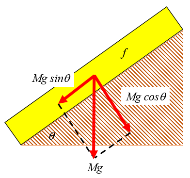 En primera instancia podemos considerar que la masa genera una fuerza gravitacional que trata de deslizar el suelo por la pendiente. Por otro lado la componente vertical al fondo rocoso genera el roce necesario para mantener la masa en su lugar: