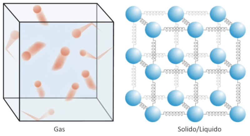 In liquids and solids, we must take into account the attraction between atoms, which is where potential energy comes into play. Therefore, in these cases, heat corresponds to the energy that particles have and with which they oscillate around the equilibrium point defined by the surrounding particles.