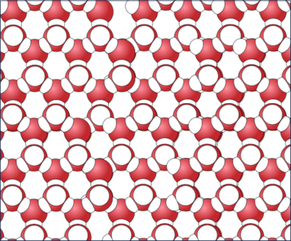 The solid phase, which in our case corresponds to ice, is the phase in which atoms cannot move relatively and can only oscillate around their equilibrium point.