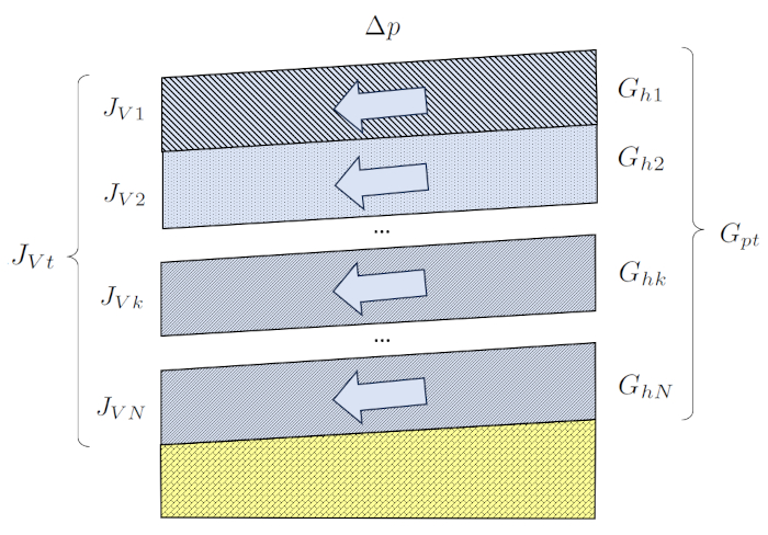 Once the hydraulic resistance and conductivity have been calculated, it becomes possible to model a multi-layer soil system. To achieve this, it is essential to compute the total resistance and conductivity and, after establishing the overall flow, to determine the partial flows (in the case of parallel layers) or the pressure drop in each layer (in the case of series layers).