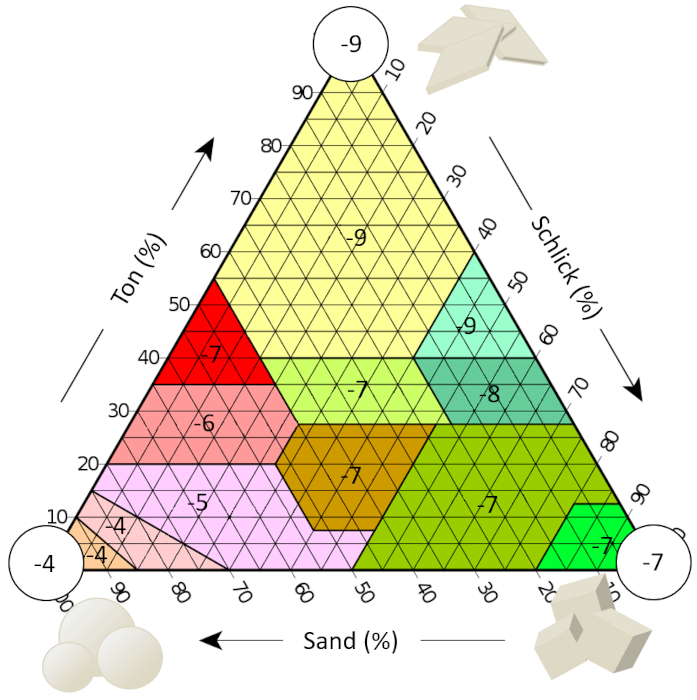 | Sandiger Ton | 45-65 | 0-20 | 35-55 | 35-45 | 1E-7 - 1E-5 [5] |