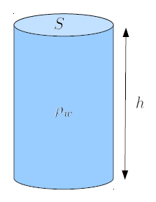 Since the mass of liquid column ($M$) depends on the liquid density ($\rho_w$), the column Section ($S$), and the column height ($h$) according to the equation: