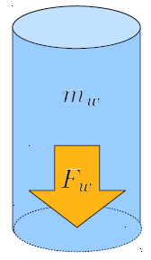 The mass of liquid column ($M$) can be calculated from the liquid density ($\rho_w$) and the column volume ($V$).