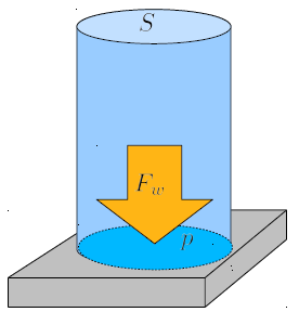 The water column pressure ($p$) is calculated from the column force ($F$) and the column Section ($S$) as follows: