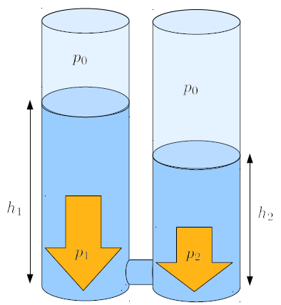 If two columns of water with different heights at their bases are connected, a situation arises where there is a pressure difference along the connecting tube.