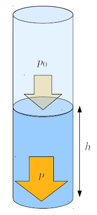 If it is considered that the column is influenced by the atmospheric pressure ($p_0$), then the contribution of the atmospheric pressure ($p_0$) must be added to the water column pressure ($p$) of the column, as shown here: