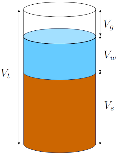 • o volume sólido ($V_s$): Essa componente inclui o volume de todos os grãos presentes na amostra.
