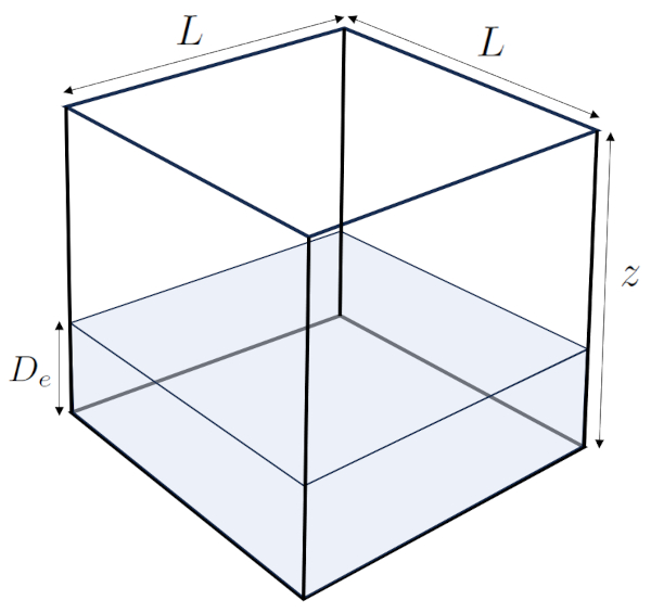 La profundidade efetiva ($D_e$) refere-se à profundidade que a água contida em um volume de solo atingiria se todo o volume sólido fosse "removido", como ilustrado na seguinte imagem: