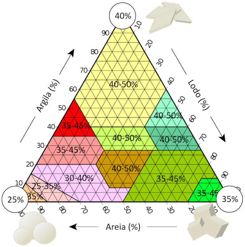 | Argila arenosa | 45-65 | 0-20 | 35-55 | 35-45 [1] |