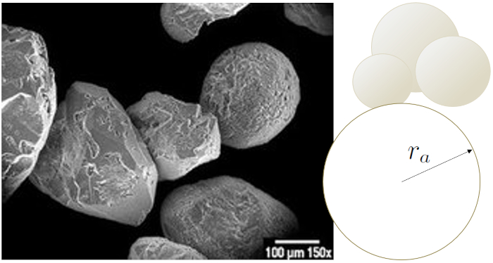 Therefore, we introduce the radius the sand grain radius ($r_a$) to describe the spheres of the sand grains.