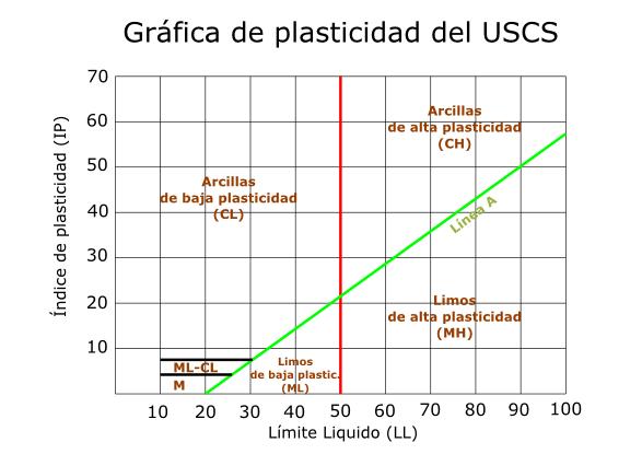 Los distintos estados del suelo seg n su contenido en agua y composici n se representan en una gr fica de limite de plasticidad vs limite de liquidez: