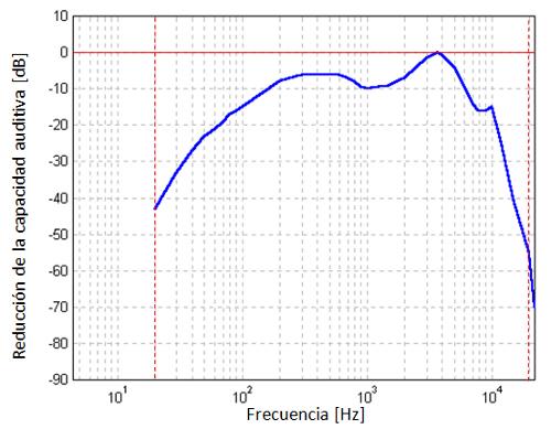 El oído humano puede captar sonidos con frecuencias entre 20 Hz y 20 kHz. Dicha capacidad se documenta con el numero de decibeles que se amortigua el sonido por frequencia: