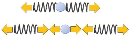 Si se desea modelar c mo se deforma un s lido bajo la influencia de una fuerza, primero se puede considerar el comportamiento de una subunidad, como dos resortes conectados uno al lado del otro, como se muestra en la imagen: