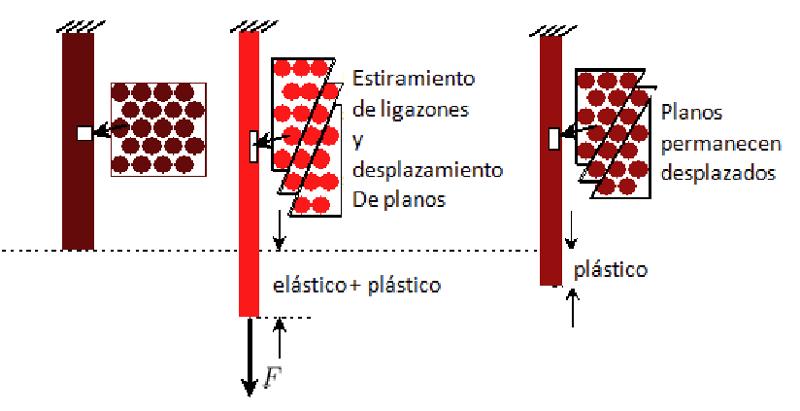 La deformaci n pl stica implica que si se reduce la tensi n aplicada, el material disminuye su deformaci n pero termina con una deformaci n permanente.
