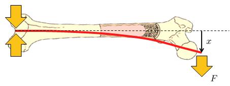 Una situaci n que puede ocurrir es que una fuerza de deformación con un punto fijo ($F_1$) act e sobre un hueso de un largo del cuerpo ($L$), el módulo de Elasticidad ($E$) y el momento de inercia de superficie ($I_s$) que est fijo en un extremo.