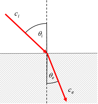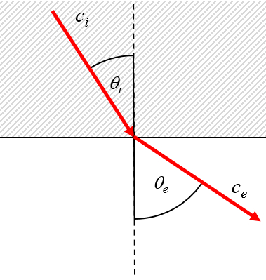 $\displaystyle\frac{c_i}{c_e}=\displaystyle\frac{c_i}{c}\displaystyle\frac{c}{c_e}=\displaystyle\frac{n_e}{n_i}=\displaystyle\frac{\sin\theta_i}{\sin\theta_e}$