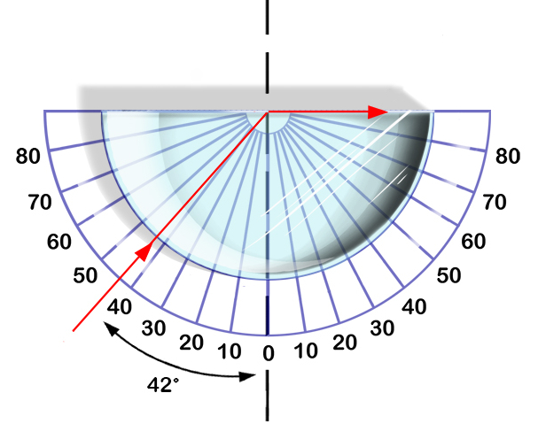 En la siguiente imagen se ven distintos haces que al llegar a ser muy grande el angulo comienzan a sufrir reflexi n total: