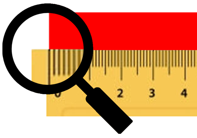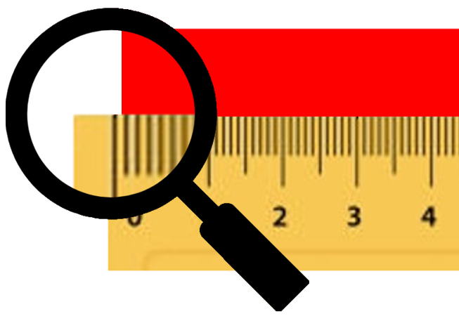 En plaçant la règle à l'origine, on se rend immédiatement compte quil est difficile daligner précisément le zéro avec le bord gauche. Une situation similaire se produit au bord droit, qui tombe entre deux graduations de la règle, nous obligeant à estimer sa valeur :