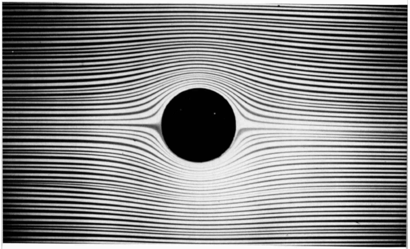 Um exemplo de fluxo laminar ao redor de uma esfera demonstra que as camadas de fluido se movem mantendo sua paralelismo.