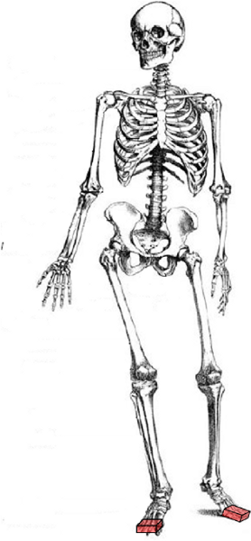 Los pies y dedos correspondientes se modela mediante paralelepípedos rectos. El pie mismo se estima en base al promedio de su altura y ancho. De igual forma se estima in largo, ancho y alto promedio para los dedos.