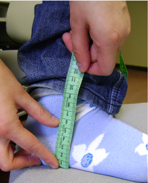 La distancia tal n-tobillo se mide a la altura mas prominente del talon y se proyecta horizontal hasta la altura del tobillo: