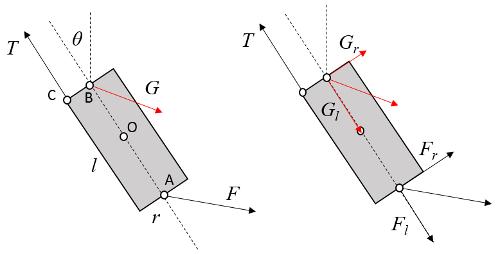 Modelo mecánico de la falange puede ser comprendido como un elemento con un centro de masa 'O' largo