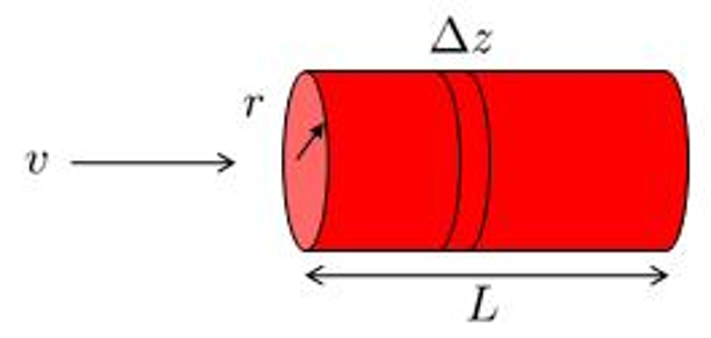 Wenn wir ein Rohr mit einer die Rohr Sektion ($S$) haben, das eine Strecke von der Rohrelement ($\Delta s$) entlang seiner Achse bewegt hat, nachdem es der Volumenelement ($\Delta V$) verschoben wurde, dann ist es gleich: